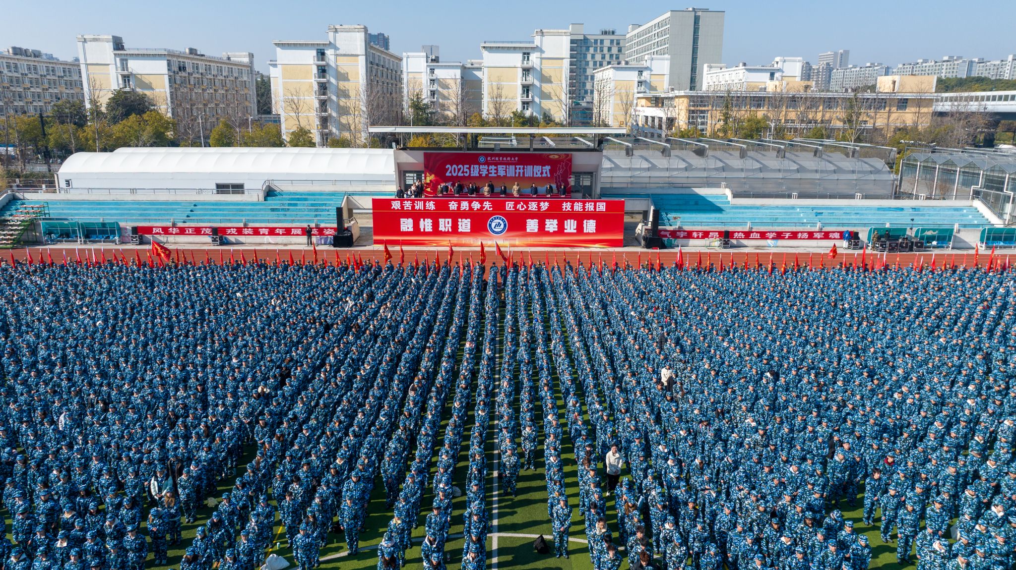 1月9日上午11时,杭州职业技术大学2025级学生军训开训仪式在学校田径场隆重举行。军训团成员、全体承训教官,各学院学工办主任、辅导员、2025级班主任及全体2025级参训学生齐聚操场,以昂扬姿态迎接军训的到来。开训仪式由人武部部长江平主持。