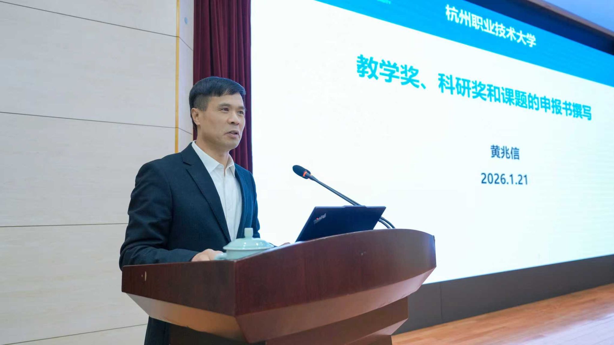 黄兆信聚焦国家级教学成果奖培育、国家科研成果奖和国家基金项目申报等重要主题,结合自身丰富的科研实践经历和研究成果,从详实的案例和具体项目申报技术出发,详细阐述了申报不同高水平奖项和科研项目的材料准备、文献梳理、表格填写、内容撰写、项目申报、团队合作等方面的注意事项和技术要求,深入解读了当前科研评价体系的变革趋势,精准剖析了学术前沿与国家战略需求的融合需求,细致拆解了从问题凝练到材料润色的全流程实操,系统梳理了成果凝练和材料撰写的方法技术,案例生动、讲解详细、深入浅出,为广大教师申报高水平业绩提供了可操作、可复制的技术路径。黄兆信深刻阐述了学术不端行为的严重性和危害性,要求教师们在学术活动中遵循客观公正、真实可信的原则,遵守学术研究的法律法规和规章制度。他强调,要加强师德师风建设,牢记学术规范,恪守学术规范,守护学术底线,努力营造风清气正的科研环境,推动学校学术研究持续稳进向好。