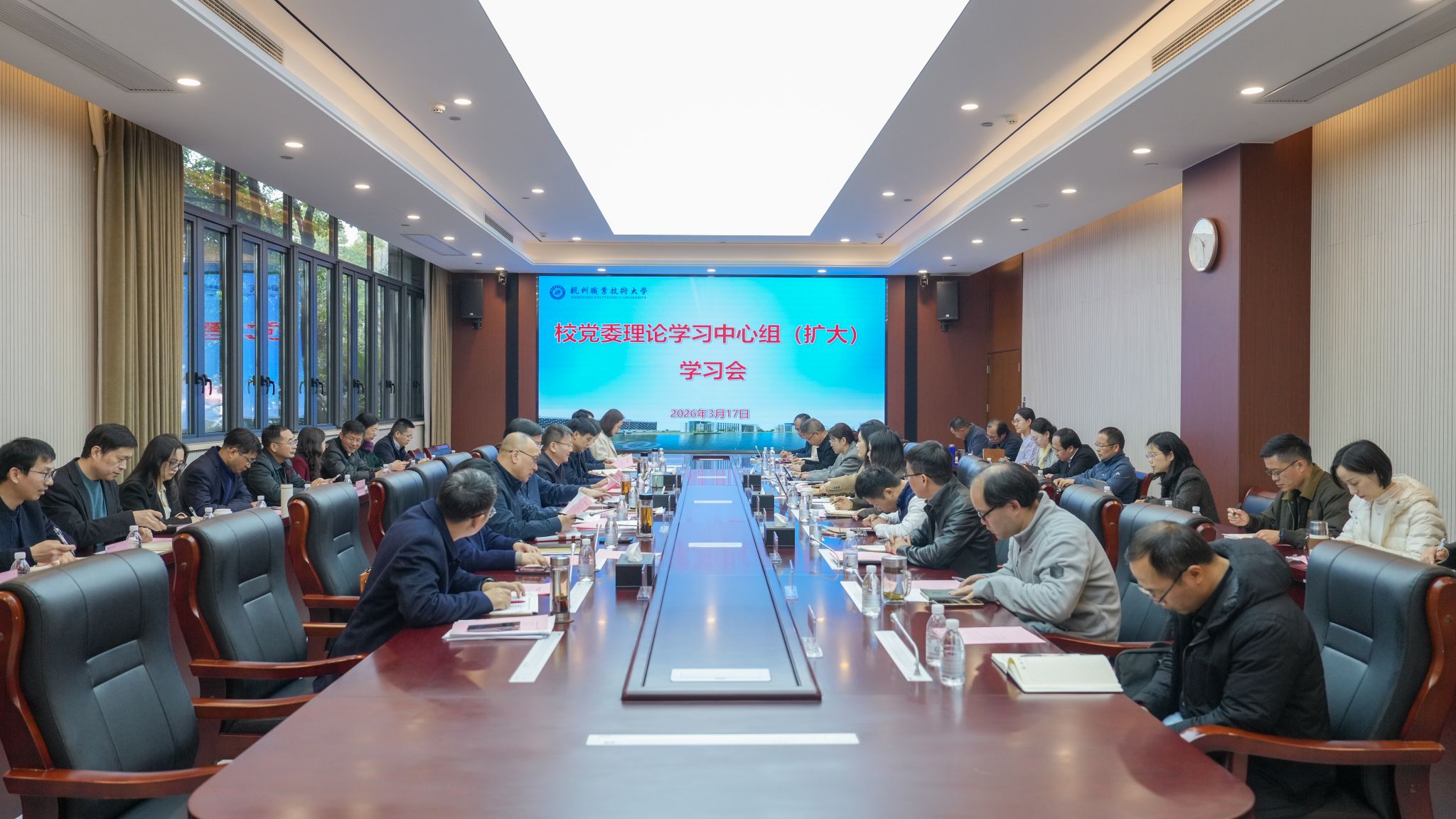 3月17日上午,学校党委召开理论学习中心组(扩大)学习会,深入学习贯彻习近平总书记关于树立和践行正确政绩观的重要论述,学习传达贯彻2026年全国两会精神、《中国共产党思想政治工作条例》、“与时俱进的浙江精神”,专题学习巡视工作监督重点。校党委书记陈文岳主持会议并讲话,校长黄兆信等全体校领导班子成员出席,各职能部门负责人、二级学院党总支(直属党支部)书记参会。