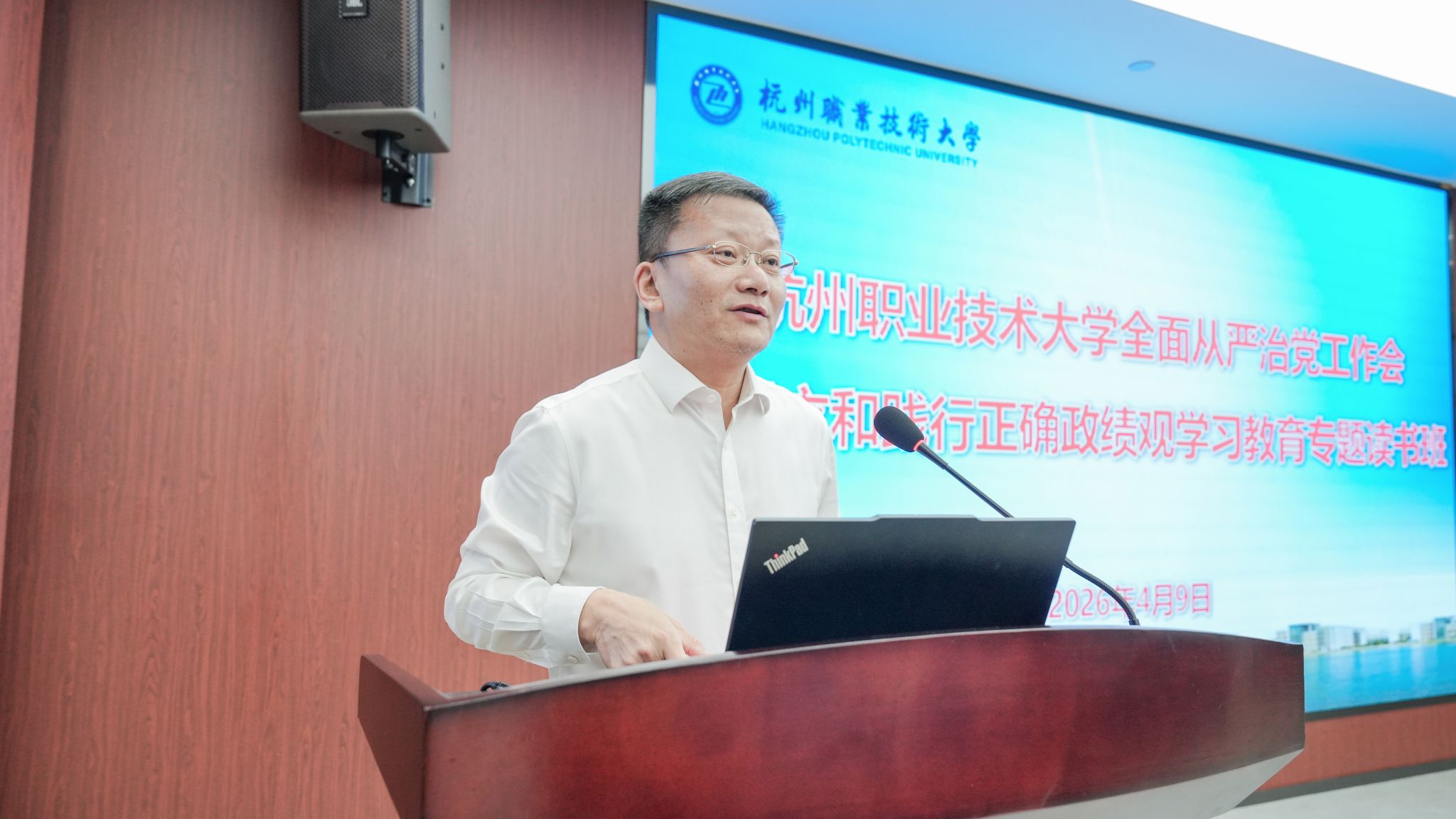 4月9日,学校召开2026 年全面从严治党工作会议暨树立和践行正确政绩观学习教育专题读书会,深入学习习近平总书记关于树立和践行正确政绩观的重要论述,认真贯彻中央和省委、市委有关部署要求,以高质量党建引领一流职业本科大学建设,以高水平办学服务区域经济社会高质量发展。党委书记陈文岳出席会议并讲话,党委副书记、校长黄兆信主持会议。