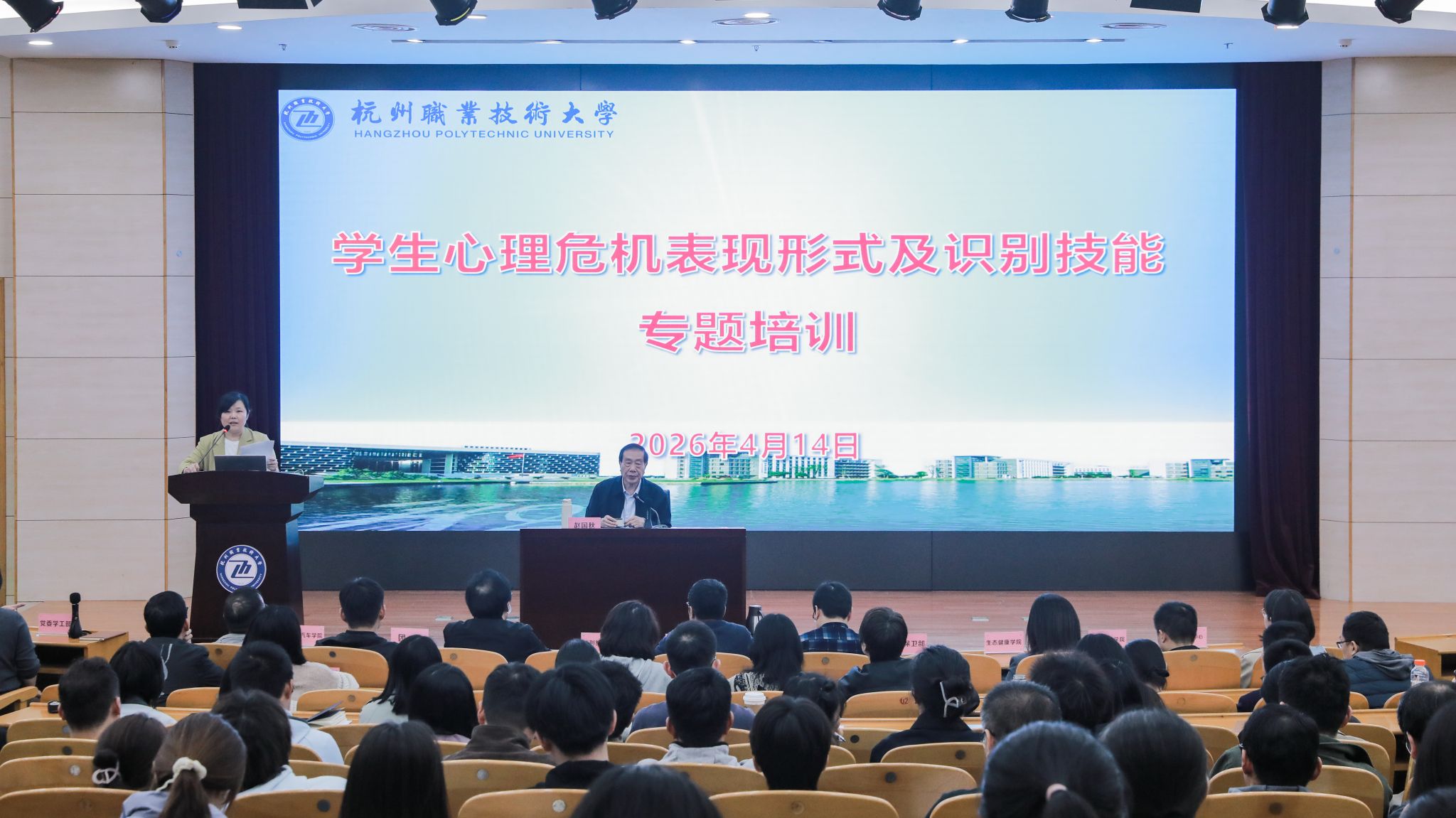 4月14日,我校举办心理危机识别及干预能力提升专题培训。特邀全国知名心理危机干预专家、浙江大学医学院研究生导师赵国秋教授全程主讲。培训分为上午“案例督导”和下午“专题讲座”两场。校党委委员、副校长邓劲莲与赵国秋教授深入交流,共同明确“预防为主、精准识别、快速响应”的工作方向,进一步夯实“家校医社”协同机制。