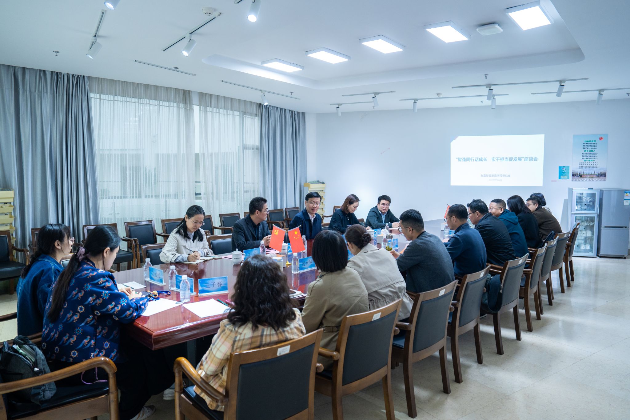 为深入推进树立和践行正确政绩观学习教育,4月22日,校党委副书记赖明诚、组织部部长韩亮,办公室、人事处、工会等相关职能部门负责人一行,赴友嘉智能制造学院开展走访调研。学院领导班子、党支部书记、高层次人才代表、班主任代表、党外人士代表等参加座谈。