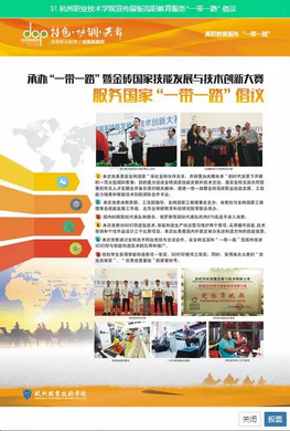 具体流程:选择“典型案例图片”,分别点击“推进技术应用与创新人才培养”、“高职教育服务一带一路倡议”、“产教融合校企合作”、“服务社会与精准扶贫”,并在右上角的搜索栏中输入“杭州职业技术学院”,最终点击投票。(手机和电脑都可以投票,每个IP限每天一次,网络投票截止2017111117:00