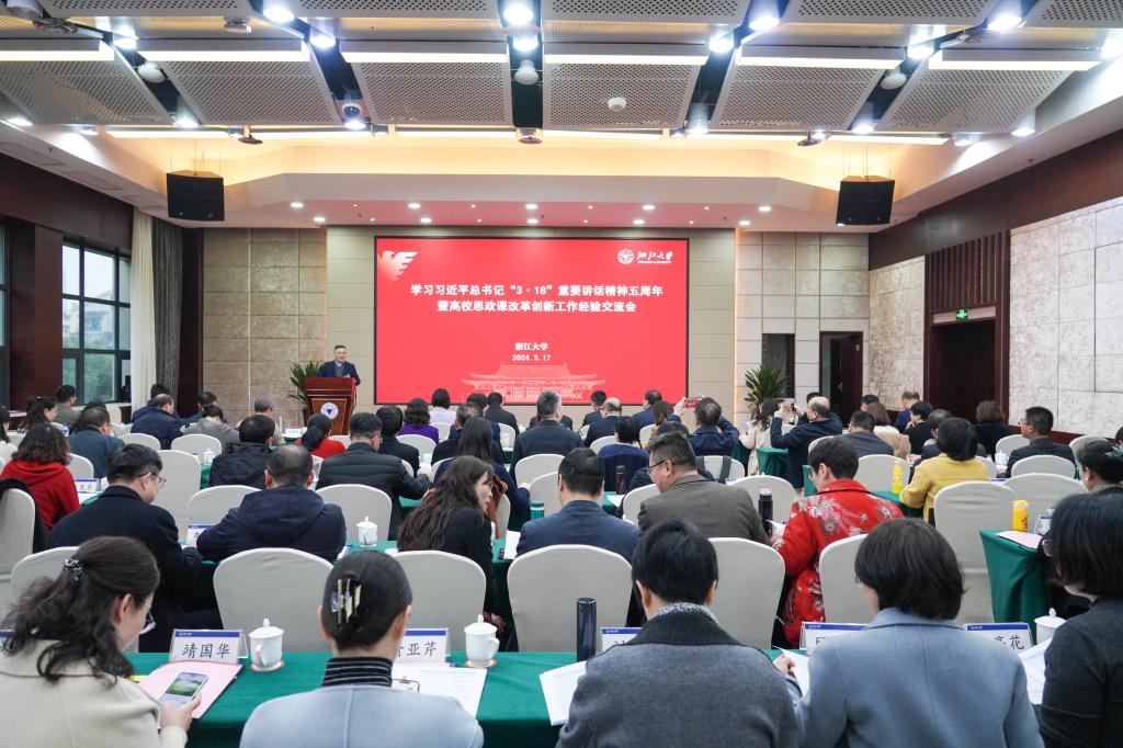 3月17日,在浙江省委教育工委、浙江省教育厅的指导下,由浙江大学和全国高校思政课“手拉手”集体备课中心(浙江大学-浙江省)举办的学习习近平总书记“3·18”重要讲话精神五周年暨高校思政课改革创新工作经验交流会在浙江大学紫金港校区举办。浙江省教育厅宣传教育与统战处处长陈雷出席开幕式并致辞。省内70多家高校马克思主义学院负责人、中学代表和浙江大学对口支援高校贵州大学和新疆农业大学马克思主义学院负责人及浙江大学师生共计130余人参加此次会议。我校马克思主义学院院长邹宏秋受邀参加了本次会议,并作为高职院校唯一代表作大会交流发言。