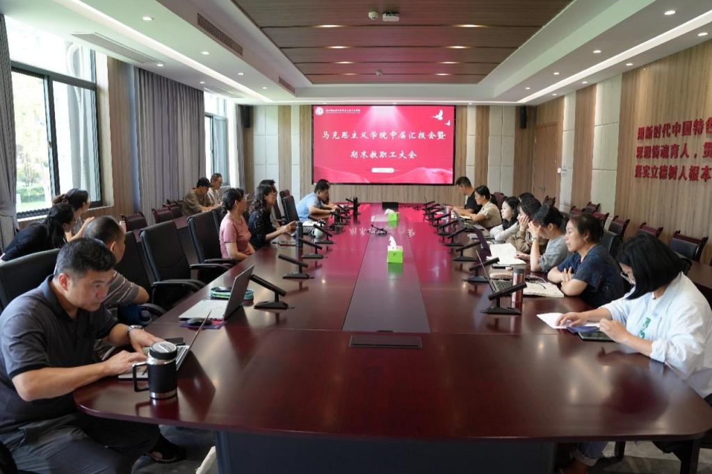 7月10日上午,马克思主义学院在研习中心召开学院中层汇报会暨期末教职工大会,总结学院各项工作,部署安排下一步工作重点。会议由马克思主义学院党总支书记、院长邹宏秋主持,马院全体教职工参加。