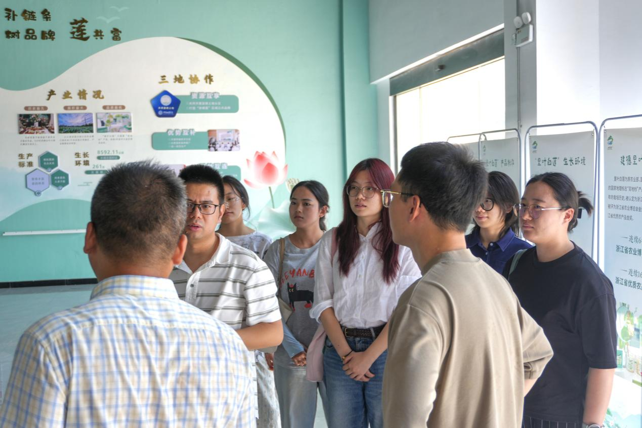 团队成员先后走访了里叶白莲工坊、西湖果莲共富工坊和建德家风馆,调研大慈岩镇乡村振兴及产业发展情况。在里叶白莲工坊,团队深入对话工坊负责人,了解里叶白莲种植合作社运营模式,探讨网络赋能“里叶白莲”地理标识品牌建设。在西湖果莲共富工坊,团队通过访问水果莲发明人、参观水果莲生产车间,全面了解大慈岩镇“工坊+合作社+农户”模式,见证“一亩荷塘,富裕一方老百姓”的生动实践。在建德家风馆,团队通过参观家风民俗展陈,访谈驻村第一书记,了解驻村干部如何活化当地家风资源,助力乡村旅游振兴。