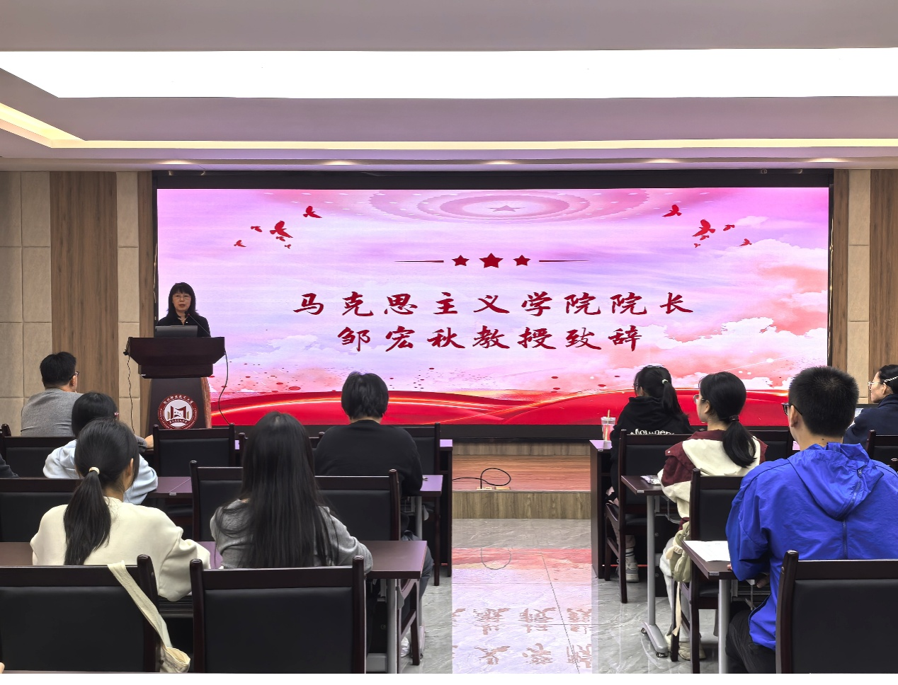 邹宏秋对第五期骨干班新学员表示热烈欢迎,并结合“00后”大学生的群体特点和思想困惑,指出青年应当读懂马克思主义,要掌握科学的理论去认识世界,去影响和改变世界。她要求,骨干班学员要坚持读原著、学原文、悟原理,不断成长为青年马克思主义者;要坚持践真知、行真务、求真效,奋力锤炼成笃行实践的青年力量。她鼓励学员积极投身丰富多彩的社会实践,真切感受习近平新时代中国特色社会主义思想的真理力量和实践伟力,以“青春之我”感受时代脉搏、以“青春之姿”宣传马克思主义理论、以“青春之名”赴时代之约,勇担历史使命,奋力书写挺膺担当的青春篇章。