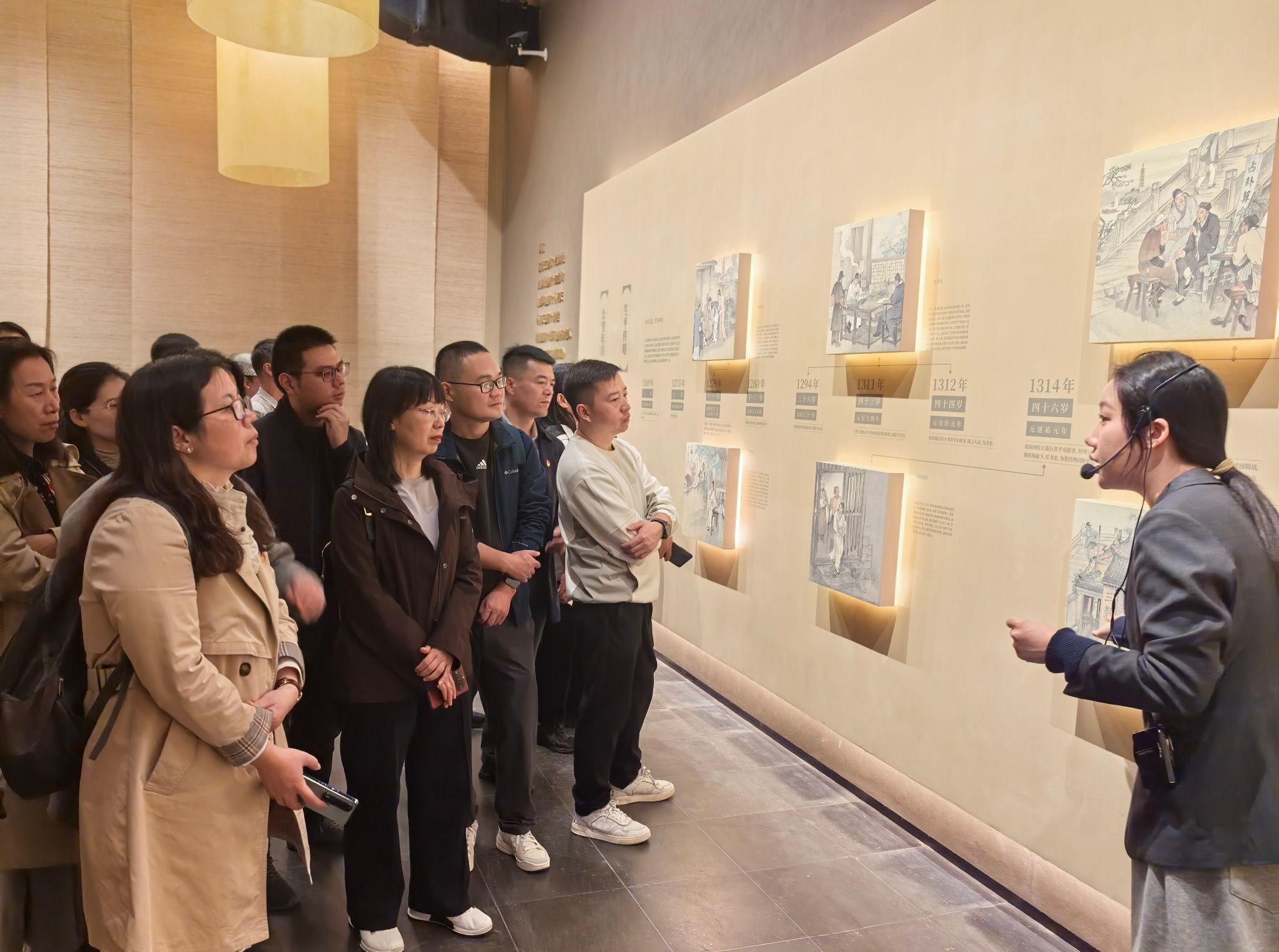 随后,全体党员转赴黄公望隐居地,在这片诗画交融的山水间,开启了一场别开生面的传统文化寻根之旅。大家参观了黄公望纪念馆及其结庐地“小洞天”,深入了解这位元代画坛宗师晚年隐居富春江畔,以自然为师,创作传世名作《富春山居图》的艺术历程与人生境界。从画卷的宁静悠远与气韵生动中,党员们深刻感悟到中华文明绵延不绝的韧性与独特的审美追求,体会到先贤寄情山水、心系家园的文化情怀。