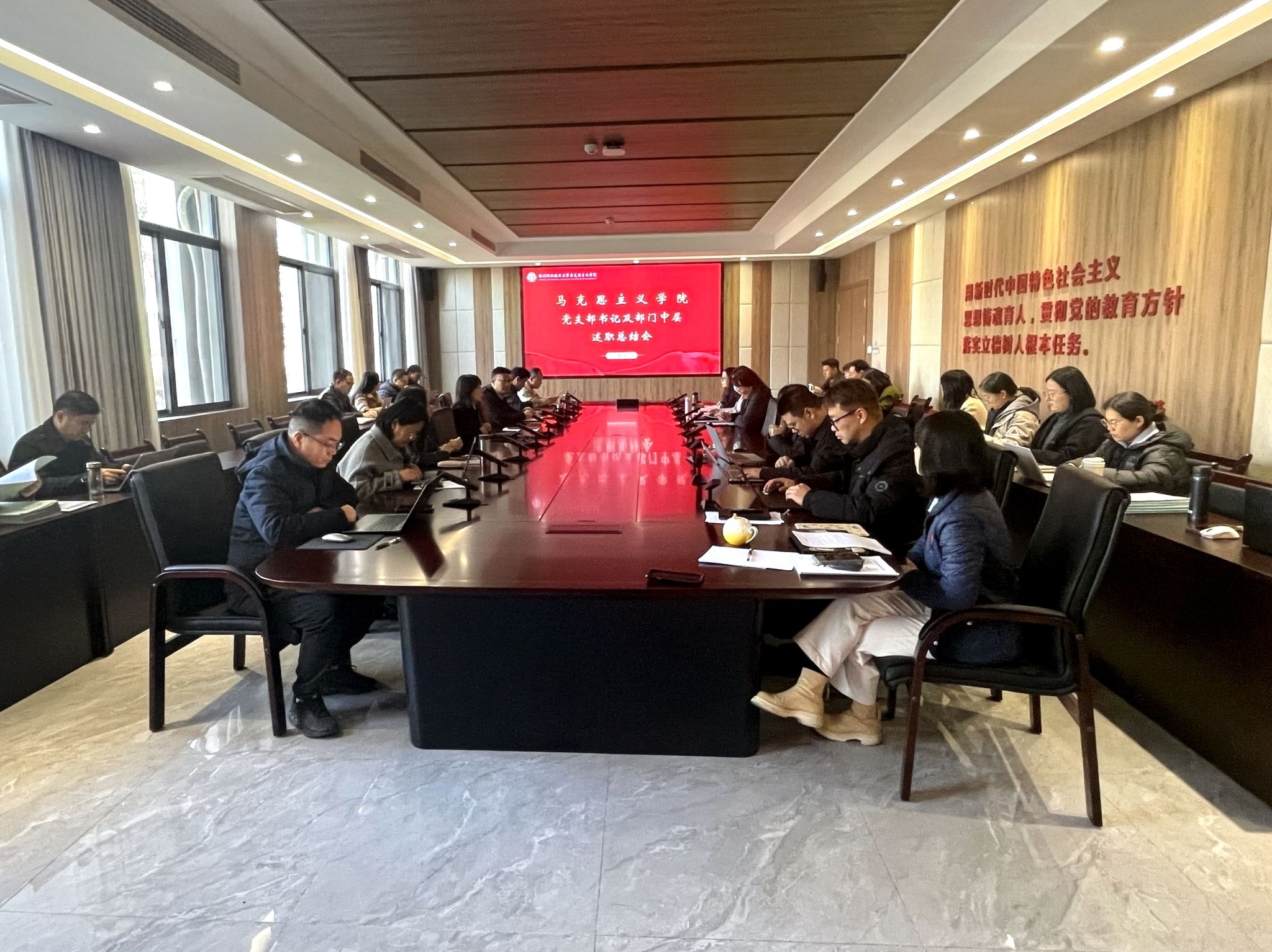 1月14日下午,马克思主义学院党总支在6108会议室召开2025年度党支部书记述职会议。会议由马克思主义学院党总支书记、院长邹宏秋主持,全体党员教师参会。